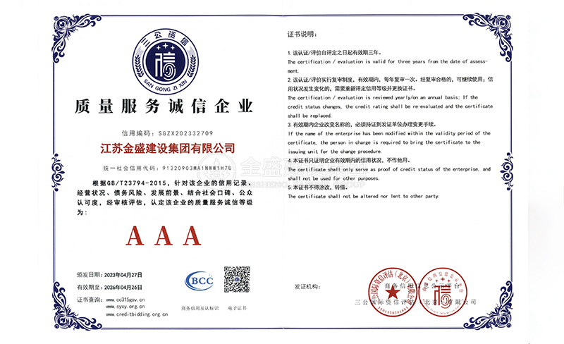 • 3A級(jí)資信等級(jí)證書(shū)